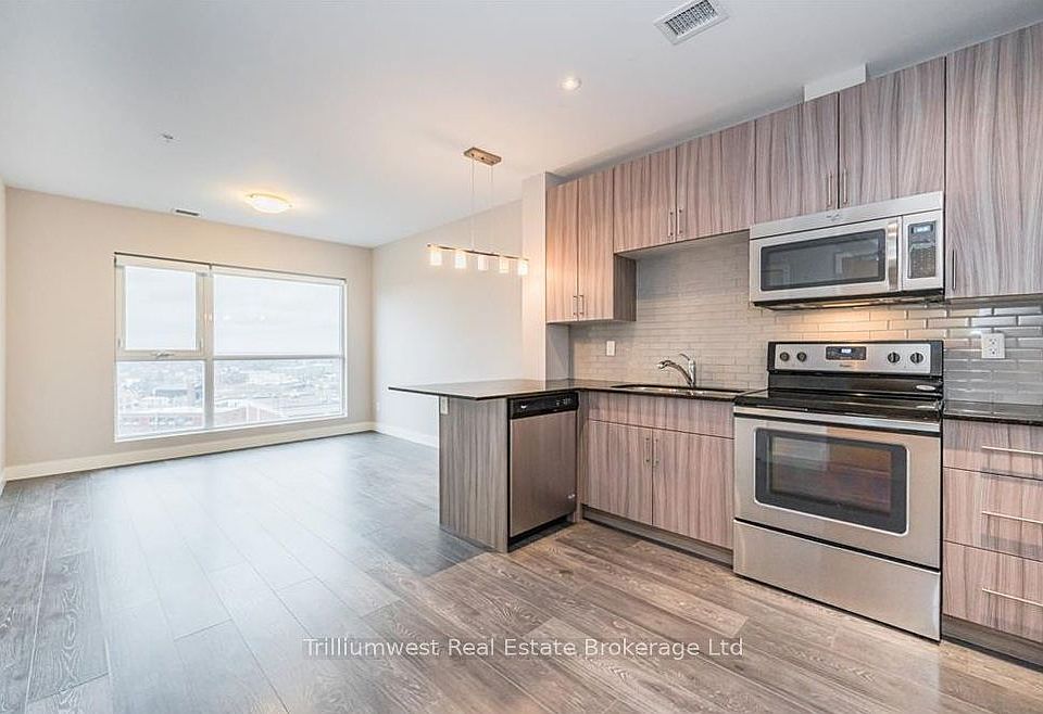 Available December 1st, this 12th-floor, 1-bedroom, 1-bathroom condominium offers modern finishes and an open-concept layout with abundant natural light and exceptional city views. The kitchen provides ample counter space and storage, while in-suite laundry adds everyday convenience. Residents enjoy access to premium building amenities, including a fitness centre, rooftop terrace, and party/entertainment room. Located in the heart of downtown Kitchener, this property is steps from the ION Light Rail Transit stop, Google, Communitech, Victoria Park, restaurants, shopping, and entertainment. Heat and water are included in rent.