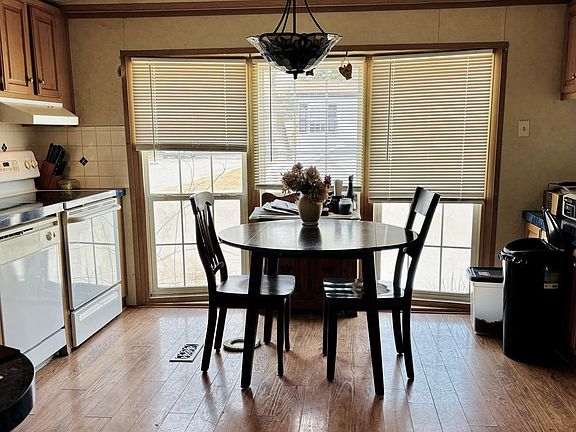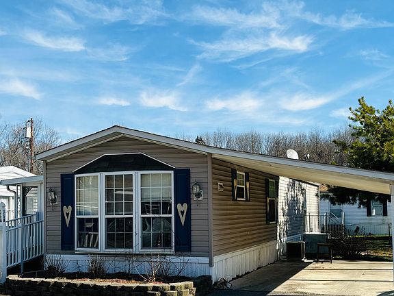 Welcome to your charming 2005 manufactured home. Offering an inviting ambiance and thoughtful features designed to enhance your lifestyle. As you approach, the home's curb appeal immediately captivates with meticulously crafted paver landscaping accents, creating a picturesque entrance. Step onto the ramp access leading to the expansive 29X9 screened-in porch, perfect for enjoying the outdoors in any season. On the opposite side, a convenient carport provides shelter for your vehicle, ensuring protection from the elements. Upon entering, you're greeted by a spacious and inviting atmosphere. The large eat-in kitchen boasts updated cabinets, ample storage space, a pantry, and stylish vinyl plank flooring, making it a delightful space for culinary adventures. The kitchen seamlessly flows into the generous living room, measuring 13X15, creating an ideal layout for entertaining guests or relaxing with loved ones. Down the hall, discover two comfortable bedrooms, including a generous primary bedroom measuring 13X11. The primary bedroom features high vaulted ceilings and a ceiling fan, providing a tranquil retreat for rest and relaxation. Adjacent, you'll find a convenient laundry area complete with a full-size washer and dryer, simplifying your daily routines. The full bathroom offers a soothing escape with a tub, perfect for unwinding after a long day. For year-round comfort, the home is equipped with propane heat and central air conditioning, ensuring optimal temperature control in any weather conditions. Additionally, the market lot fee of $670 per month, plus water and sewer usage charges, cover essential amenities and services provided by the community. Please note that prospective buyers must apply for approval from the Southbridge Community office and assume the lease of the propane tank in their name, ensuring seamless transition and compliance with community regulations.