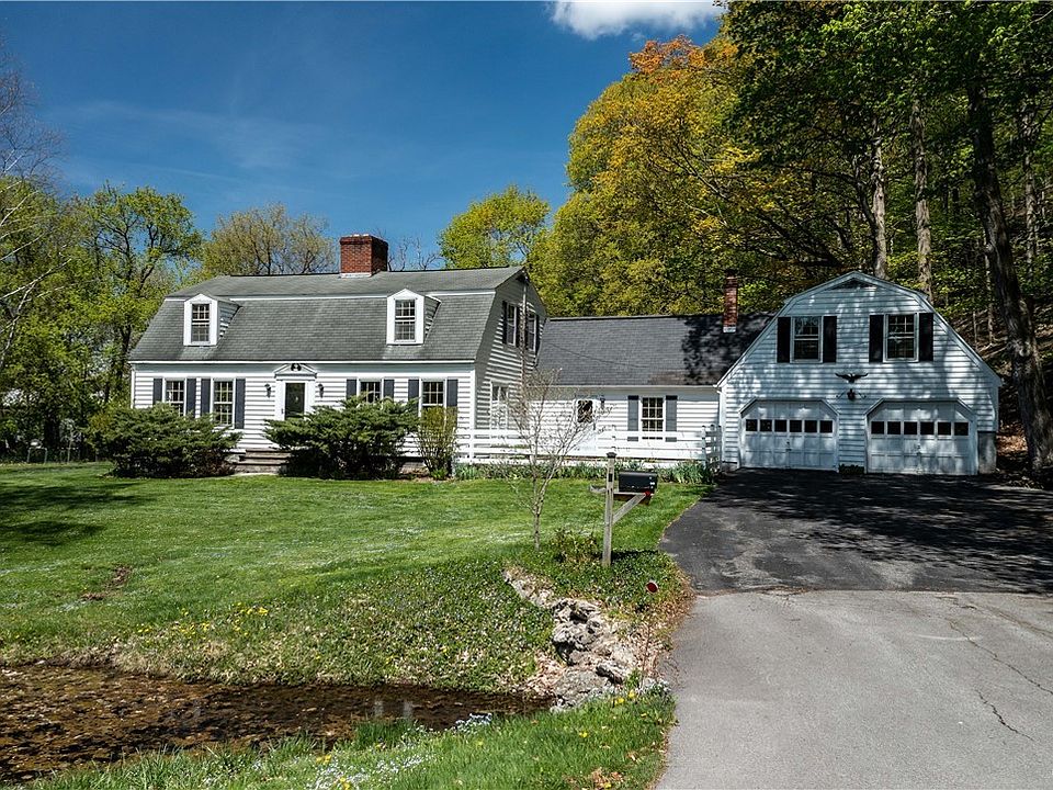 Welcome to 1 Virginia Lane, a charming & inviting home nestled on 2.5 beautiful acres in the heart of the quaint Village of Chittenango This spacious 2500 sq ft home offers a perfect blend of comfort, style, and functionality. As you step inside you are greeted by a bright & airy living room featuring large windows that flood the space with natural light. The adjoining heated sunroom overlooks the lush backyard. This Center Hall colonial also offers a lovely formal dining rm w/French doors that open to the front patio & lily pond. The eatin kitchen w/wood burning fireplace boasts ample counter & cabinet space. Adjacent to the kitchen & laundry area is a family rm w/a fireplace. The 2nd fl features Owner's bdrm w/ensuite bath & the 4th of 4 woodburning fireplaces in the house. There are also 2 additional bdrms & a full baths on this upper level. The 4 bdrm & full bath is located over the garage & has a separate entrance making it a perfect inlaw/ teen suite or office space. The lower level is partially finished & includes a wet bar & rec area. Outside, the yard is a true gem featuring a patio w/fireplace, an inground pool & hot tub, a wonderful barn for storage & a spring fed pond