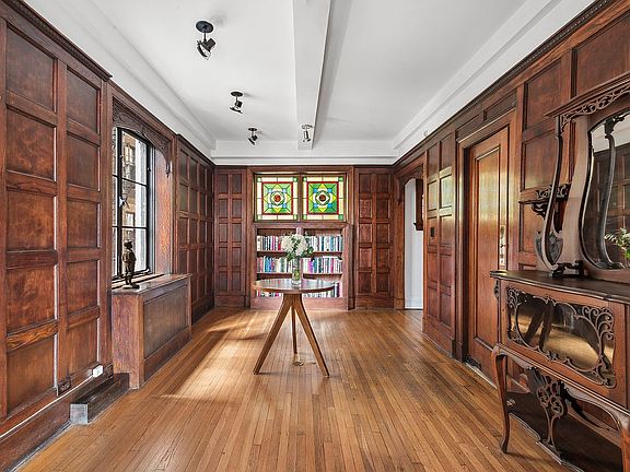 $200,000 Price Reduction. On the market for the first time in four decades, Residence 501-502, a spacious 3BR/2BA duplex, in the iconic Hotel des Artistes has both a fascinating history and classic architecture. The home of Reese Schonfeld, the co-founder of CNN and the founder and first president of the Food Network and his wife, Patricia O’Gorman, a television executive, (who purchased it from director Mike Nichols and his novelist wife Annabel Davis-Goff) this apartment is resplendent with original details. The entry foyer, separate dining room and living room feature beautiful wood paneling, stained glass windows and an original staircase to the second floor. Adjacent to the living room is the great room/library with its soaring 18’10” ceiling and 14’ windows with views of the city and a majestic cupola. Both the dining room and the great room/ library have access to the spacious kitchen with separate butler's pantry as well as access to an additional staircase to the second floor bedrooms. The sun-kissed primary bedroom has two exposures, north and east, with a lovely view of the treetops of Central Park over the church dome – imagine waking up to that! Two additional well-appointed bedrooms, one with an ensuite bath and a balcony overlooking the great room, complete this home. Due to the duplex nature of the Hotel des Artistes, Residence 501-502 is actually on the 7th and 8th floors. With Board approval, central air conditioning, a washer/dryer and a first floor powder room could be added.