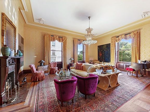 Steeped in history and architectural grandeur, the residence has been meticulously maintained and thoughtfully restored to preserve its original 19th-century splendor. Soaring 13.6-foot ceilings, elaborately carved woodwork, plaster moldings, pocket doors, shutters framing all windows, and five wood-burning fireplaces exemplify the craftsmanship for which The Dakota is celebrated. Throughout, pristine hardwood floors and a discreet central air conditioning system enhance comfort without compromising the home's period authenticity.