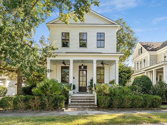 A home that looks and feels straight out of Southern Living Magazine - 1 W Bluff is effortlessly elegant & beautifully curated at every turn. Tucked along one of Habersham's most picturesque & highly desired areas, this beautifully crafted Front Light Build blends timeless Lowcountry charm with thoughtful modern design. Slow down & enjoy the breezes off the Broad River from your front porch, with the aesthetic & functional upgrade of built-to-last brick steps. Throughout the home, upgraded trim work & tall ceilings make every room feel expansive & refined. The main level boasts soaring 12-foot ceilings, gorgeous diagonal wood floor made from Shaw Natchez Hickory in a parchment tone, & an expansive open floor plan. Large windows offer plenty of Natural Light. Custom tongue-and-groove details, & Grass Cloth Wallpaper in the powder room add layers of Texture & Sophistication. Upstairs you'll find 10-foot ceilings, maintaining that open, airy feel throughout the home. The Spacious Kitchen is a Showpiece, anchored by Honed & Polished Granite Counters, Antique Italian Lighting, & a generous pantry. A built-in office nook or flexible workspace & Extra Storage Closet are both off Kitchen. Out back, a private screened porch opens to the fenced courtyard, perfect for quiet mornings or entertaining under the Lowcountry sky. There's no lawn to mow here, minimal-maintenance outdoor areas give you more time to enjoy your free time. Detached 1-Car Garage & 1-Carport. A Major Bonus is the Finished Shed with insulation, wood-paneled walls, & HVAC - Versatile Options for a studio, office, or creative retreat. (Shed not included in overall SqFt count). This home is not only stylish & functional, it's also efficient, featuring a Rinnai tankless water heater & HVAC system divided into 2 zones, controlled with a smart thermostat. Metal Roof is a longer lasting roof type in this climate. Dishwasher, Refrigerator, & HVAC Compressor have all been updated since build. Upstairs, the serene primary suite offers a walk-in closet with the laundry room close by. Two additional bedrooms & a 2nd full Bathroom are also upstairs. A large, spray-foamed attic provides plenty of temperature-controlled storage. Crawl Space is also spray foamed. Low maintenance, beautifully built, and rich with Southern character, this Habersham home captures the best of Beaufort living. Habersham is an Award-Winning Coastal Living & Southern Living Community with Luxury Amenities for an Affordable HOA.