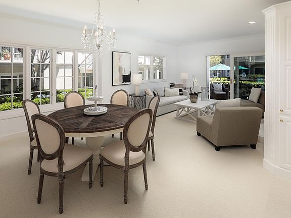 Welcome to the Parc Regent, 55+ community, located steps from the heart of downtown Los Altos. Enjoy the perfect blend of luxury and convenience. This spacious 2 bed/2 bath unit is situated in the quietest area of the complex overlooking the beautiful pool. The gourmet kitchen has plenty of room for a table and chairs, and includes high-end appliances and granite countertops. A breathtaking Schonbek chandelier with Swarovski crystals hangs above the dining area. The living room, filled with natural light, is centered around the gas fireplace complete with built-in cabinets creating a cozy respite. Sliding doors to the private patio brings the beautiful grounds and pool into sharp focus. Don't miss this opportunity to own your dream retirement home offering luxury and convenience with maintenance-free living for peace of mind.