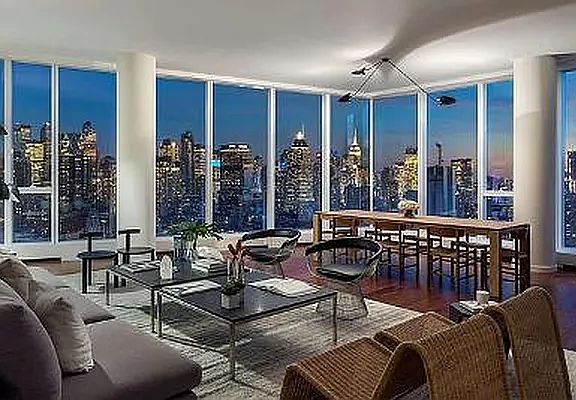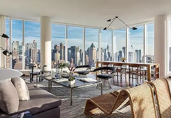 corner four bedroom, four-and-a-half bath residence designed by Jeffrey Beers is wrapped in floor-to-ceiling windows showcasing spectacular river and city views to the east, south and west.