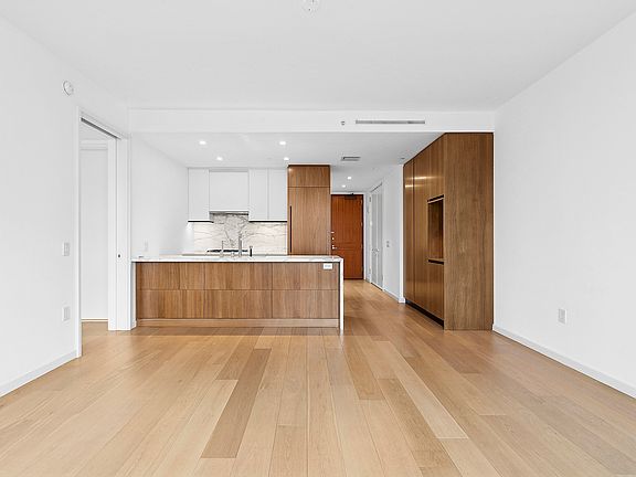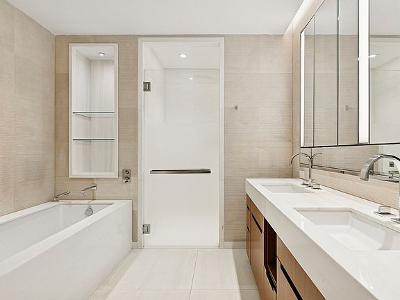 Experience luxury living in this spectacular one-bedroom, one-and-a-half-bath residence at One West End, a landmark building designed by world-renowned architect Jeffrey Beers. Residence 16L spans 919 square feet and offers a perfectly balanced layout for both comfortable living and stylish entertaining. The home features white oak floors, floor-to-ceiling windows, and custom finishes throughout, filling the space with natural light and sophistication. The chef's kitchen, custom-designed by Scavolini, is equipped with marble countertops, a waterfall island, and a matching marble backsplash. Premium appliances include a Wolf cooktop and oven, Sub-Zero refrigerator, Gaggenau wine cooler, and Miele dishwasher. The primary suite boasts a spa-like en-suite bathroom with a dual vanity, glass-enclosed shower, Zuma soaking tub, and heated marble floors, all complemented by elegant Dornbracht fixtures. The powder room features a custom stone vanity, a carved stone sink, marble flooring, and a herringbone accent wall. Additional highlights include an in-unit washer/dryer and zoned climate control for year-round comfort.