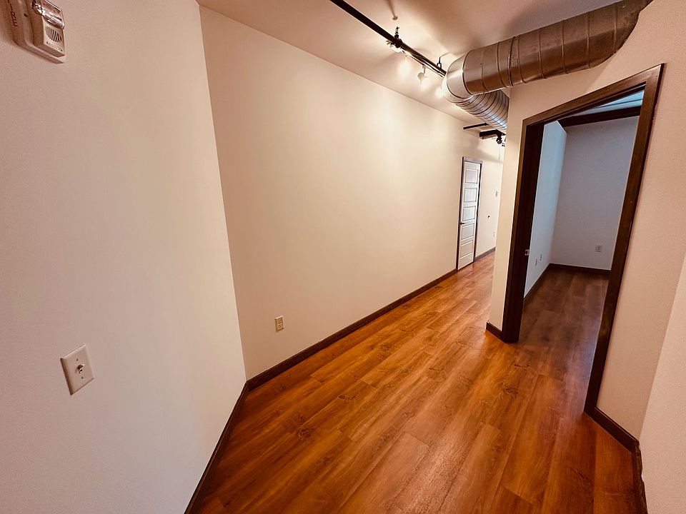 One bedroom, one bath unit in One West. The property offers units with every modern convenience in a historic building with a great downtown location. All units have a stainless-steel appliance package, in unit washer/dryer, hardwood floors, central heat/AC, and open plan kitchens with granite countertops. The property has a fitness center, parking garage, storage units, and secure mailroom.