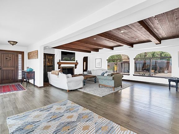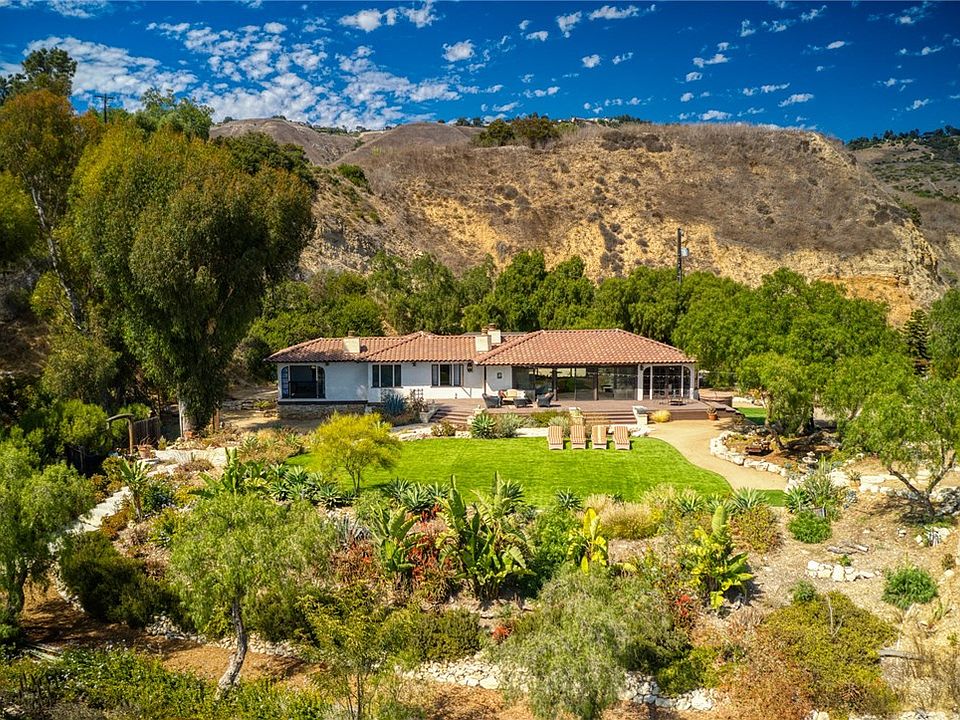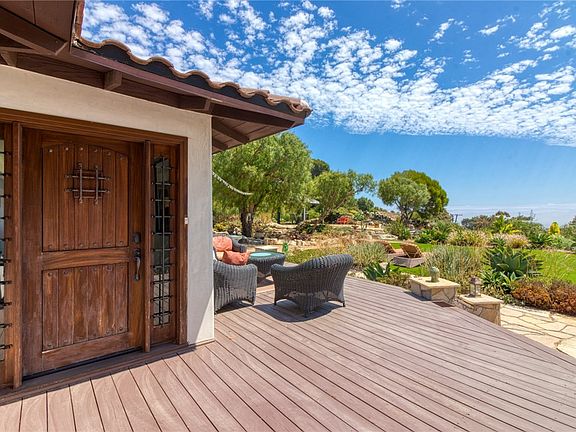 Absolutely charming and tranquil early California Spanish style estate with panoramic ocean views located in the private gated horse community of Portuguese Bend. Stunning views from inside & outside the home. Large usable corner lot with amazing trees, lush greenery, native plantings, outdoor pergola, badminton court, & outdoor seating areas with fabulous views.  The home is set above the lane to maximize the view and maintain privacy. Nature Conservancy hills toward the rear & Pony Club and ocean views to the front. The home is completely updated with a decorator's eye to retain the original Spanish charm.  Master bedroom has pueblo-style fireplace, custom closets, french doors toward the view, en-suite master bath w/ stand alone tub and large glass walk-in shower.  2nd bedroom has a Spanish tile fireplace with hand-hewn mantel, full closet and view of Catalina.  3rd bedroom has custom closet & ocean views.  Abundant parking with two driveways; front and back.  Rear driveway leads to the three-car covered parking.   On this spacious lot there are two other structures:  One is a large storage unit which is carpeted and lighted.  The other is a private and serene smaller guest unit with its own fenced yard.  Buyer to perform own due diligence including inspections, geology, city of RPV permitting and PBCA guidelines and restrictions, etc.  This property is a rare opportunity for anyone looking for charm, comfort, space, privacy and views!