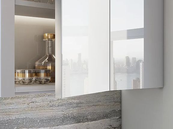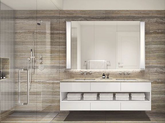 Residence 624 is a graciously designed studio that offers a large study upon entry and eastern views of the New York Stock Exchange. The building's one-of-a-kind residences maintain the integrity and sprawling character of the 1930s scale, boasting ceiling heights over ten feet throughout and wide-plank French Oak hardwood floors. Kitchens designed by Harry Macklowe himself provide seamless technology coupled with classic elegance. Oceanwood marble slabs rest on custom Aran Cucine cabinetry, accented by white glass panels and satin nickel finishes. No expense was spared when outfitting One Wall's kitchens: from the best in class Meile appliances to the externally-venting exhaust to the insinkerator garbage disposal, these chef-styled kitchens are the perfect blend of beauty and function. Warm stone primary bathrooms feature large bath tubs with thermostatic controls. Mirrored medicine cabinets are integrated with LED lighting with Silver Romano Travertine honed floors. Nestled between the famed New York Stock Exchange and Trinity Church (Alexander Hamilton's final resting place), One Wall Street rests in the heart of New York history. The base of the building houses the Financial District's first Whole Foods and a sprawling Lifetime Fitness Resort. With full time door staff and porters, full time resident managers, and white-glove concierge service, One Wall Street is the Financial District's first true luxury residential building. Residents will enjoy a complimentary membership to Lifetime Fitness Resort, as well as access to the building's private gym on the 38th floor, which includes a 75 foot lap pool overlooking downtown Manhattan and harbor views. A restaurant private to building residents and their guests sits on the 39th floor and is flanked by a 4,000 square foot landscaped terrace with stunning views. A private coworking space, children's playroom, a teen 's lounge, private storage, and bike storage all cement One Wall Street's status as the ultimate Downtown luxury building. THE COMPLETE OFFERING TERMS ARE IN AN OFFERING PLAN AVAILABLE FROM SPONSOR. FILE NO. CD17-0216 SPONSOR: MIP ONE WALL STREET ACQUISITION LLC, 767 FIFTH AVENUE, 21ST FLOOR, NEW YORK, NY 10153. EQUAL HOUSING OPPORTUNITY.