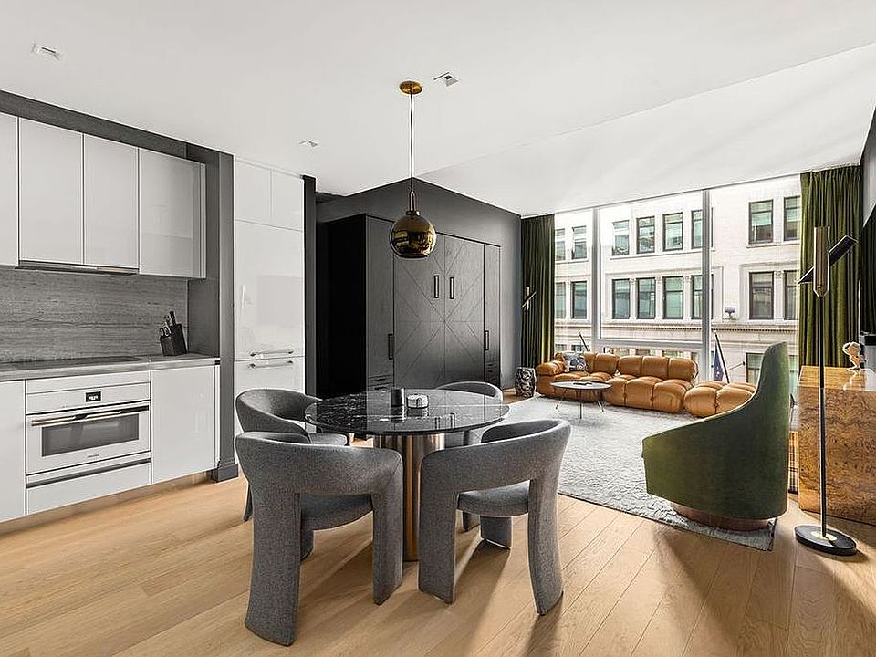 With only 22 units, this generously-proportioned studio/loft is set apart from the entirety of the building and resides within the new glass wall addition at One Wall Street. At roughly 630 square feet, and with floor-to-ceiling glass wall windows facing west over Broadway, this elegant home is the perfect blend of space, function, and modernity.
