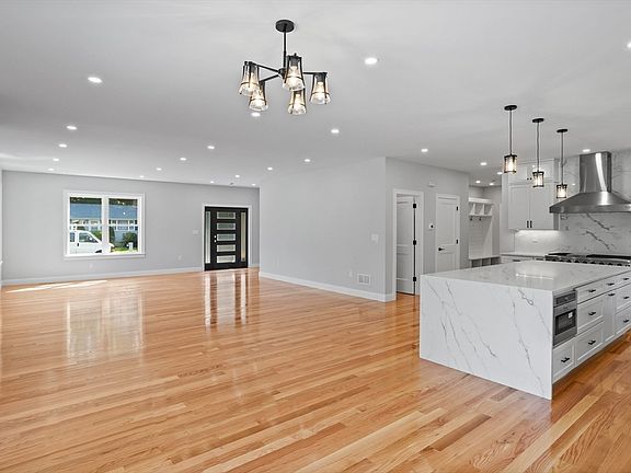 Stunning new construction in Bedford Center! Just a short walking distance to both shopping centers and T Bus stops. Wide open, sunlit floor plan on first level screams entertainment! Gorgeous hardwood floors throughout the top two levels. Beautiful white kitchen with extra large island, quartz countertops, and high-end appliances. The five Bedrooms, which include a very convenient first floor bedroom suite and large 2nd floor primary suite w/walk-in closet, all have their own private bathrooms. The finished lower level offers wonderful additional living space and playroom possibilities. Large corner lot, thoughtfully landscaped with a sprinkler system, has amazing potential for an additional dwelling and recreational fun. The magnificent stone patio has a built-in firepit and is just awaiting your arrival! This property has many unique attributes, not commonly seen in new construction, and is worth a visit!