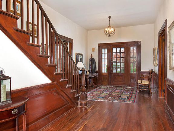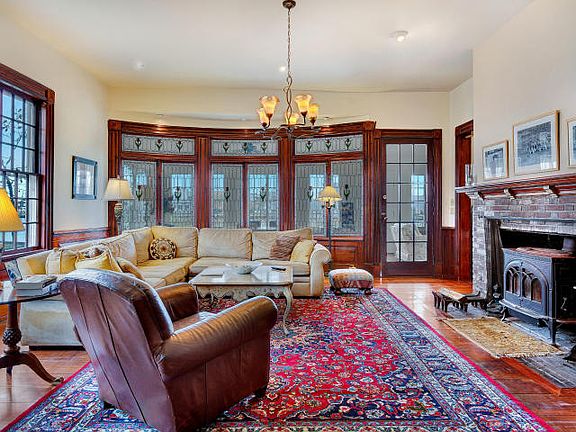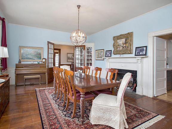 Charming waterfront Colonial in one of Rumson's most enjoyable family neighborhoods and a short walk to the beach. Historical charm and character throughout with modern amenities and updates. Inviting 35 foot entrance way with open staircase. Spacious living room with wide plank floors, fireplace, and spectacular stained glass windows. Beautiful waterfront sunroom. Banquet sized dining room with fireplace. Family-size kitchen with separate eating area, center island, double ovens, and butlers pantry. A private den and a bedroom/sitting room finish off the first floor of this well-appointed home. Open second floor landing with sitting area. Large master bedroom with waterfront balcony. Three additional oversized bedrooms. Separate 2 car garage with renovated 1 bedroom / 1 bathroom apartment with living room kitchen. Private waterfront patio. Within minutes to NYC ferry.
