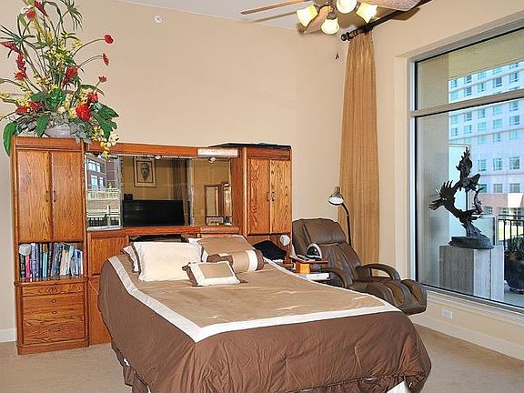 Waterfront condo w/spectacular views-walk to restaurants, concerts at The Pavilion & shopping! Prime corner location in the Waterway Lofts, featuring gorgeous hardwood flrs, soaring ceilings & crown moulding. Kitch w/granite counters, SS appl''s, glass front cabinets & bkfast bar opens to den w/gaslog FP & wall of windows; mstr retreat w/balcony; 3rd bdrm could be study; 2 assigned covered parking spaces; amenities incl. card/code access, elevator, pool, spa, summer kitch & firepit.