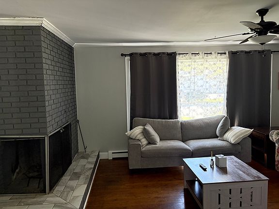 This recently updated 3-bedroom, 1-bath brick house offers 1,350 sq ft of comfort and style. Enjoy hardwood floors throughout, a warm wood-burning fireplace, and a modern eat-in kitchen featuring appliances ready to be use. Step through sliding doors onto a spacious deck overlooking a large backyard with an above-ground pool for a bunch of family fun! Located on a quiet corner lot, you're within walking distance to local shops and eateries. The owner pays for the water bill, tenants will be responsible for the electricity and garbage bill. The house just got Verizon Fios put in, has a choice to continue with Fios or change to their own provider.