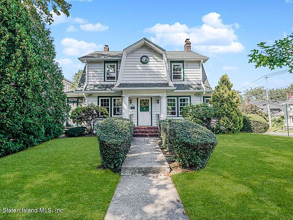 Welcome to 1 Whitewood Avenue, a stately center hall Colonial nestled on a picturesque corner lot in the heart of Sunset Hill—one of Staten Island's most sought-after neighborhoods. This charming 3-bedroom, 1.5-bath home blends timeless architectural character with thoughtful updates, offering comfort, elegance, and convenience. Set behind mature landscaping that provides privacy and lush greenery year-round, this beautifully maintained property features a detached garage and curb appeal that captures the essence of classic Staten Island living. Inside, the first floor welcomes you with a gracious entry hall flanked by a spacious living room complete with a wood-burning fireplace, and a sunroom ideal for a home office, playroom, or reading nook. The formal dining room is perfect for entertaining, and the kitchen includes a cozy breakfast nook and side door that opens to a serene screened-in porch and private yard—an ideal setting for morning coffee or evening gatherings. A half bath completes the main level. Upstairs, you'll find three generously sized bedrooms and a full bath, along with access to a full walk-up attic offering excellent storage and exciting potential for expansion. The full- basement features high ceilings, laundry, utilities, and plenty of space for a media room, home gym, or additional workspace. Additional highlights include newly finished oak hardwood floors throughout, fresh paint, new windows that flood the home with natural light, and original architectural details that bring warmth and character. All of this is located in a prime Sunset Hill location—just minutes from parks, shopping, dining, transportation, and schools. Don't miss your chance to own this rare gem with classic charm and modern updates in one of Staten Island's most desirable areas.