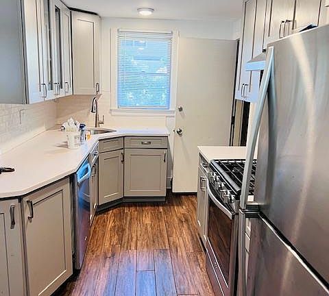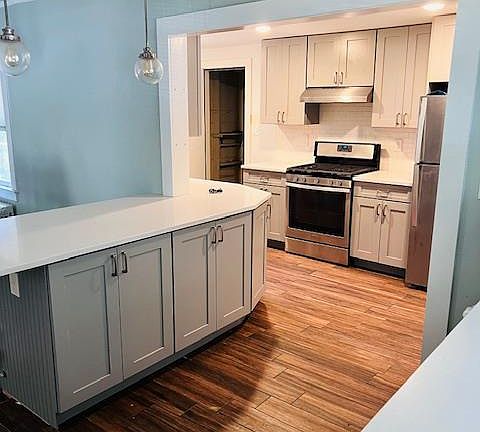 Single-family “Cape” style home. The property contains 2,036+square spread over 3 levels, including a finished basement with interior and exterior access. The home is frame/brick construction with asphalt shingle roof, cedar shingles siding and double hung aluminum windows. The home consists of bedrooms, two full bathrooms, a kitchen with original appliances and a living room with an arched entry way and a wood burning fireplace. The property also boasts a detached 2 car garage. Some upgrades needed to uncover this gem. The property has a efficient layout to accommodate your growing family.