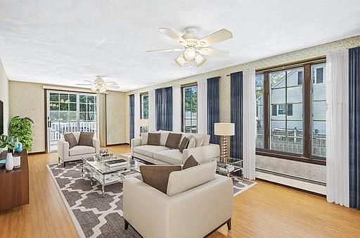 Tucked away in a charming South Peabody neighborhood, this lovingly maintained 4 bedroom, 3 bath cape sits on a beautiful corner lot and boasts 3 levels of finished square footage! The main level is drenched with sunlight, featuring gorgeous hardwood floors, access to the deck, 2 spacious entertaining areas, and a kitchen with a peninsula & stainless steel appliances. Additionally, on this level you have a sitting area, 2 bedrooms, and a full bath. Upstairs you will find 2 more generously sized bedrooms with great closet space & another full bath. When you step down into the finished basement, you will be greeted with 3 more entertaining spaces, including what could be used as a home office area or guest quarters with a full bath. Storage space, laundry, and a workshop area round out this level. Outside you can enjoy the inground pool, spacious deck & side yard! Open House Schedule: 12-2PM on 5/29 & 5/30 No appointment required for Open House **Some photos have been virtually staged**