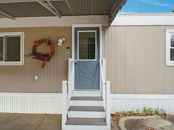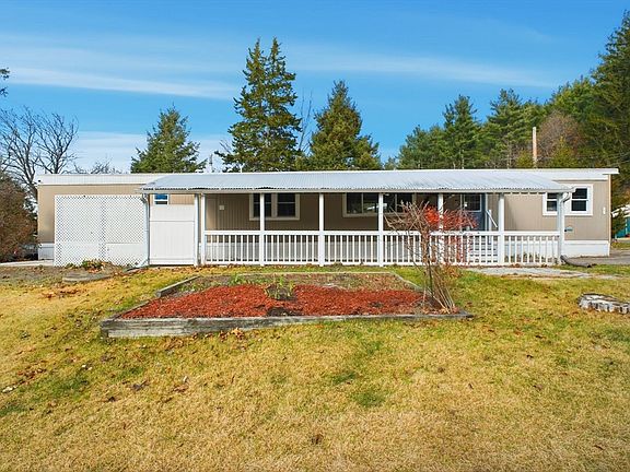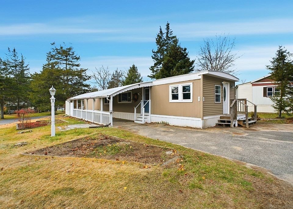 Step into this beautifully remodeled home in Meadowbrook Acres, a welcoming 55+ community. This charming residence features 4 rooms, 2 bedrooms, an oversized carport, and a newer, low-maintenance 10x12 deck with vinyl railings and Trex decking. The stunning kitchen has been fully updated with new Sheetrock, cabinets, a farmhouse-style sink, butcher block countertops, tiled backsplash, pantry, stainless steel appliances, and new exterior doors and windows. The spacious living room boasts a pellet stove, wall heat/A/C unit, built-in shelving, and new flooring throughout. The guest bedroom offers generous closet space, while the luxurious bathroom showcases a tiled shower, tile floor, granite-topped vanity, linen closet, and a stackable washer/dryer. The hallway includes a furnace and sliding door to the deck. The main bedroom is generously sized with double closets. Sale subject to park approval.