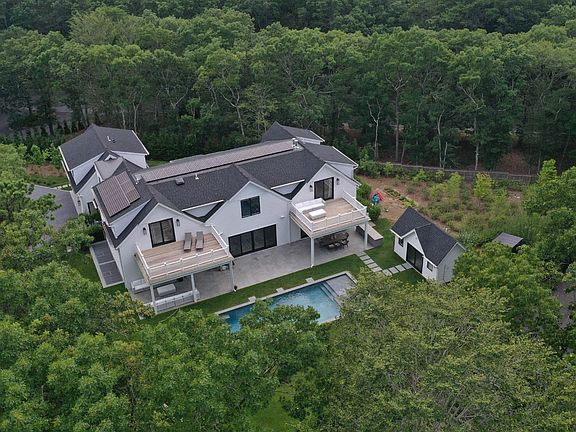 Discover the epitome of fine Hamptons living with this exceptional new construction home in East Hampton. Nestled on .96 of an acre just minutes from the village center, this stunning residence offers 9,004+/- sq. ft. of luxurious living space across three floors. With 8 bedrooms, 8 full baths, and 2 half baths, this home caters to all your comfort and lifestyle needs. Step inside to find a formal dining area and an open living space featuring a sleek linear fireplace, perfect for entertaining. The striking glass staircase in the foyer elegantly connects all levels, including the fully equipped basement. Outdoor amenities are designed for ultimate relaxation and enjoyment, featuring an 18x38 gunite pool with an 8x8 spa, and a pool house complete with a shower, toilet, sink, and beverage center. The basement is a haven of luxury, featuring a gym, a movie theater, and two additional bedrooms with baths. Large egress windows ensure plenty of natural light, creating an inviting and bright space. With every conceivable amenity included, this home ensures you will want for nothing. This property is a true gem, offering unparalleled luxury and convenience in the heart of East Hampton.
