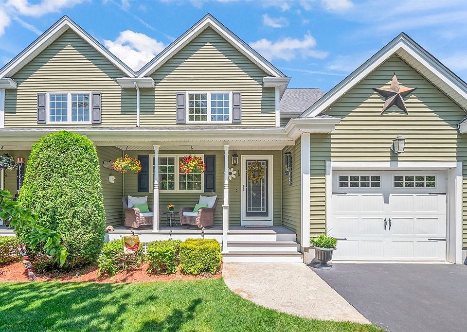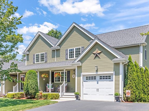 Welcome to 1 Woodland Ct Unit B, a spacious 3-bdrm, 2.5-bath townhome boasting 2,271 sq ft of versatile living space across 3 levels. Ideally located on a tranquil cul-de-sac in Milford near shopping, parks, trails & commuter routes, this home blends beauty, comfort and convenience. The open-concept main level features a spacious living room with soaring vaulted-ceilings and gleaming hdwd floors. Entertain away in the sun-filled dining room, perfect for holidays + gatherings! The stunning kitchen is a chef's dream with granite countertops, stainless appliances & gas cooking. Enjoy the light+lovely sunroom with walls of windows! Upstairs, the primary suite boasts a walk-in closet and full ensuite bath. Finished lower level includes an inspirational family room/game room and 3rd guest bedroom/home office! Enjoy outdoor living on the front farmers porch + Trex back deck with tranquil woodland views. Turnkey condition, absolutely gorgeous! Gas heat, C/A, NO CONDO FEE, spacious 1-car garage