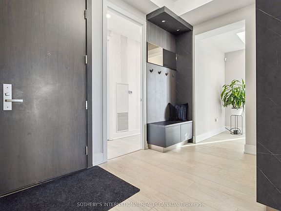 A true executive suite in the heart of Yorkville! This unit is perfect for downsizers, executives, and it makes a great investment as well. This Penthouse Collection condo is the architect's own one of a kind design with 3 bedrooms and a fully enclosed den with custom desk/full size murphy bed (1900sqft appr.)4 bathrooms (each bedroom has its own plus a powder room!), 10 foot ceilings, a sumptuous primary bedroom suite (oversized for King bed), with a large walk-in closet and a spa-like bath (his & hers vanities, standalone tub, bidet & toilet room) clad in marble and adorned with opulent wallpaper. Approx. 200K in upgrades including incredible storage/built-ins, a designer marble living room wall with large Samsung Frame TV, and full size appliances. Two guest rooms are furnished with a full-sized bed and day bed that turns into a king size bed. Beautiful furnishings cared for by the owners also available. 1 parking 1 locker included.