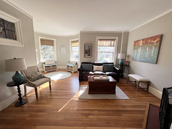 Beautiful Victorian condominium that feels like a single family home in the heart of Winchester. Close to town center, elementary/middle/high schools, library, the Fells, and commuter rail. Gorgeous hardwood floors throughout. Built-ins, original moldings, and high ceilings. Eat-in kitchen with granite counters and stainless steel appliances. Four bedrooms with an additional room on the third floor that can be used as an office or den. Large sunny living room with stained glass window, fireplace, and classic turret overlooking perennial gardens. Detached 2-car garage, porch, deck and backyard patio.