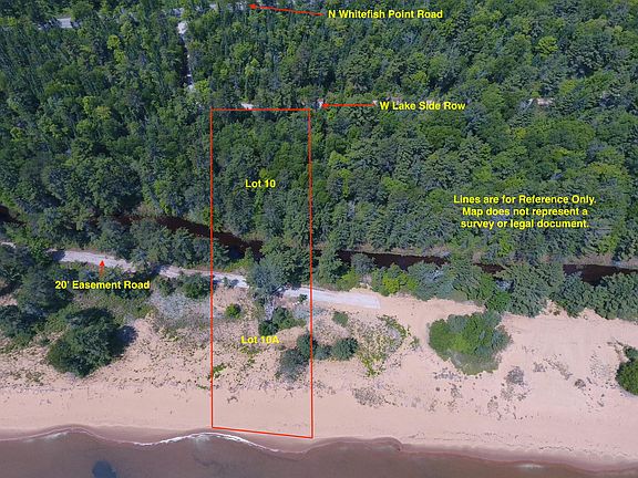 Walkable beach miles in either direction on Lake Superior makes this is an amazing find. Located along Third Creek with 103 feet of sandy beach on Lake Superior's Whitefish Bay. This property offers two lots one on the beach and one on the other side of the creek (a back lot) that extends all the way to N Whitefish Point Road. Eagles nest nearby and the tranquility is truly inspiring. Access is by privately maintained roads within the subdivision. Subdivision restrictions in place. Fiber optic, electric and phone/DSL all available from Whitefish Point Rd. This unique property has a recent survey on file. There is practically no inventory of prime beach on the lake right at present. Act quickly!