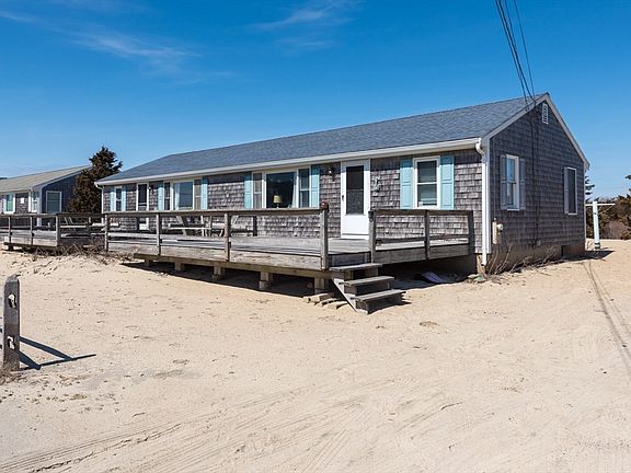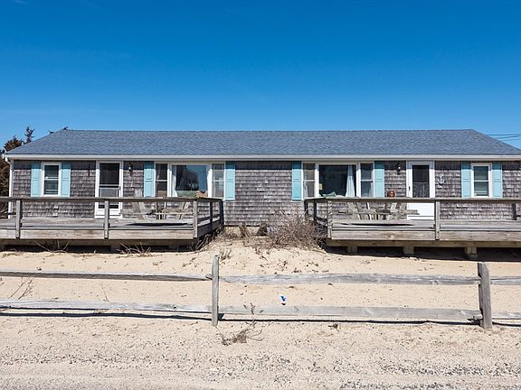 Beach House Fun and Beach House Investment! Only feet to the Ocean, beach access and water views of Nantucket Sound, make this turn key, renovated duplex ranch a fantastic offering! The 2 separate units, both on one floor, each have three bedrooms, a full bathroom, and open flow kitchen and living room. Oversized front and rear decks with the back yard donning outdoor showers and beautiful salt marsh views. Avail of a strong rental stream by using it as a complete investment property, or keep one side for yourself and rent out the other. Recent updates include: new kitchens with granite counters, new floors, front roof, Mini-split A/C. Showings start Thursday April 4 at 3 pm.