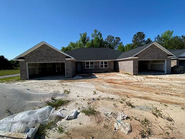 New construction duplex with each side featuring an open concept kitchen/great room, 3 bedrooms / 2 bathrooms, a side patio and 2 car garage.
