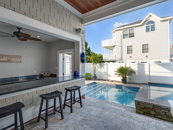 One of a kind 8 year old beach front single family home on Sea Isle's Promenade. This home boasts 110' along the beach allowing all 6 en-suite bedrooms to enjoy unobstructed ocean views and deck area. Awesome private outside pool area with a fully equipped bar for entertaining. This home also has an amazing bonus room type area (or 2nd family room) just inside from the pool to continue the relaxing and entertaining. 4 stop elevator and tons of ocean front decking on all 3 floors to enjoy. Building itself is 4509 sq. ft.