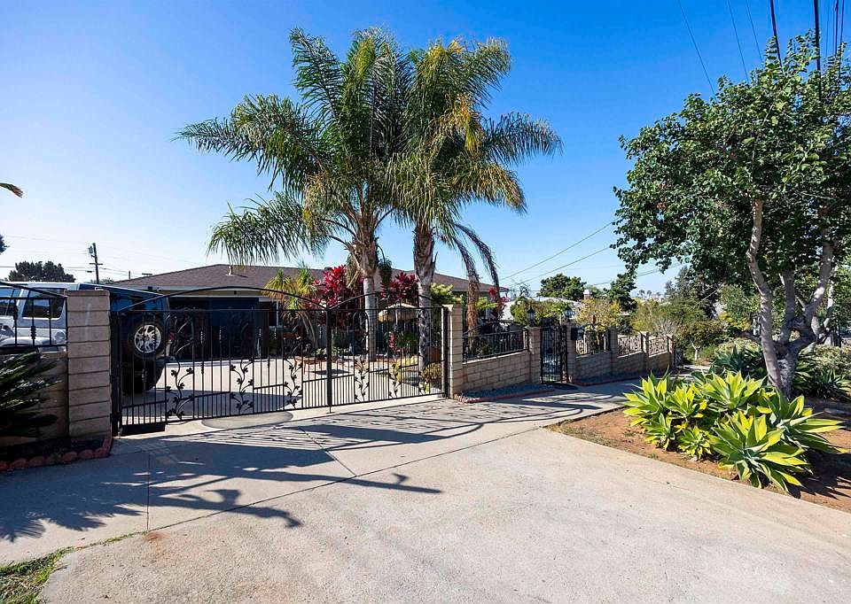 Discover this beautifully maintained, Classic Mid-Century Modern single level home, perfectly blending timeless charm with modern upgrades. Behind an impressive iron and brick gate, this inviting residence features a spacious living room with a stunning tray ceiling, recessed lighting, and an open, airy layout that flows seamlessly into the kitchen and dining area. The updated in-ground swimming pool has been freshly re-plastered, finished with new coping, creating the ideal backyard oasis for entertaining or relaxing. Inside, you'll find gorgeous wood and tile flooring throughout, plus a converted garage that now serves as a versatile guest room or home office with custom built-in cabinetry. Additional updates include a full size stackable LG washer and dryer, a newer refrigerator, hot water heater, upgraded windows in north bedroom and bathroom. The generous lot includes RV potential and lush landscaping with tropical touches, including dragon fruit and papaya plants. Additional amenities include: The new Gaylord Pacific Resort, which is the largest convention resort on the West Coast, and only a few minutes drive at 1.5 miles. The exciting new Eucalyptus Park is underway and waiting completion in mid 2026. Enjoy the perfect blend of style, comfort, and convenience-close to shopping, restaurants. This home is move-in ready and a rare opportunity to own a piece of mid-century elegance!