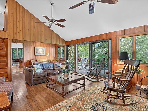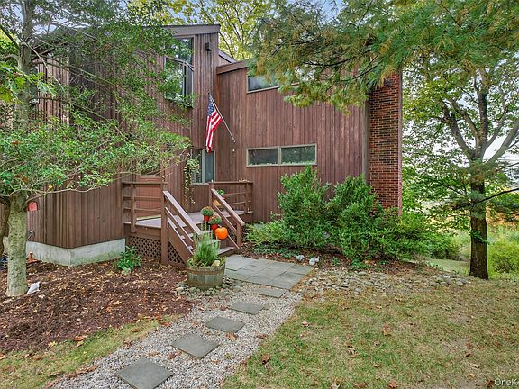 Welcome to this architecturally unique + custom-built contemporary home that has been impeccably maintained by its original owner, nestled in the heart of the Hudson Valley. Built in 1975 + thoughtfully designed to harmonize with its natural surroundings, this 4-bedroom, 4.5-bath residence offers refined living + immersive tranquility—just an hour from New York City.