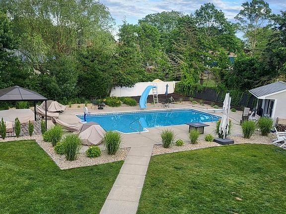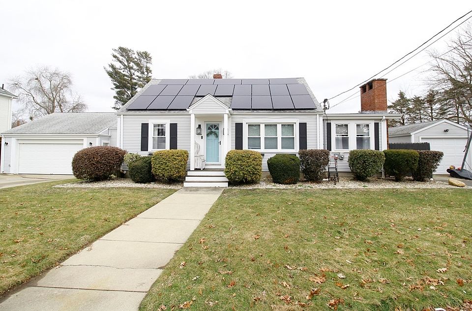 Welcome to New Bedford! This well maintained cape is nestled at the end of a dead end street. This home has 3 bedrooms, 2 bathrooms, and a mudroom. The expansive living room features a fireplace with built-in shelving. White shaker cabinets in the kitchen with a large dining area, a full bathroom, and the main bedroom can all be found on the main level of the home. Upstairs you will find 2 more bedrooms, 1 of them with a walk-in closet, and another full bathroom. Exterior features a full fenced in yard, a deck, an attached oversized 2 car garage as well as a detached 1 car garage with a separate driveway, irrigation system, solar panels in-ground pool, and a pool house with a half bathroom! Many updates include but not limited to kitchen, main bathroom, mudroom, pool house, pool pump, pool liner & cover, and custom built-in shelving to name a few. First showing will be at the Open House Saturday September 21 11:00 AM - 1:00 PM
