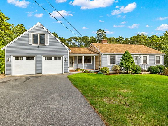 Make 10 Aladoe Farm Lane your private retreat! This lovely ranch, which sits on .95 acres, in a serene and quiet setting includes 3 bedrooms and 2 baths. It was expanded and updated in 2012 to include a primary bedroom/bath wing with access to a large deck overlooking gardens and an oversized 2 car garage with a stairway to a large unfinished area above for potential additional living space. This home features hardwood floors, granite counters, office area off kitchen, central AC, oil hot water heat, propane for gas stove, first floor laundry and a walkout lower level. This unique home has a third garage accessed by a second driveway! Beaches, shopping, restaurants and golf are nearby to complete your Cape Cod experience!