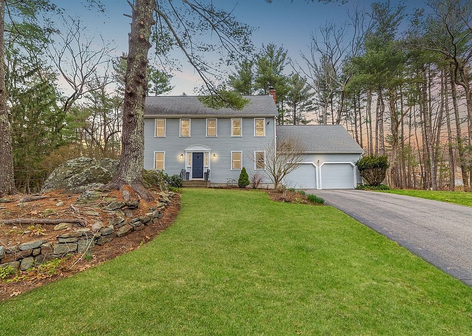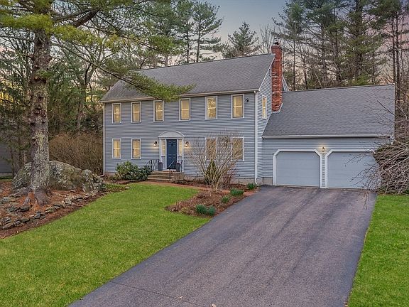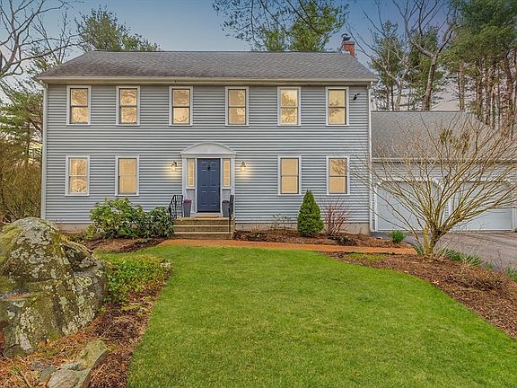 Welcome home to this well-maintained 4 BR Colonial! Beautifully situated on 1.1 acres in a quiet cul-de-sac neighborhood. The main level features a recently updated sun-splashed eat-in kitchen w/peninsula, spacious pantry closet, coffee bar area and a slider leading to a deck, overlooking a beautifully landscaped private wooded backyard abutting~7 acres of Medway conservation land & nearby walking trails. Its expansive floor plan opens to a cozy fireside family rm and bay windowed formal LR & DR, perfect for elegant entertaining and casual living. Hardwoods throughout 1st and 2nd floors. Its convenient 1st-floor laundry room & 1/2 bath complete the main level. The upper-level living area boasts a generously sized primary bedroom w/a walk-in closet and a newly upgraded en suite bath. 3 addt'l large bedrooms w/updated guest bath complete the upper level. The unfinished lower level has lots of potential living sp & storage. Lge 2 Car garage & shed. Top Schools. Mins to HWY & Commuter Rail