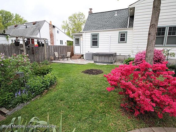 Nestled on a quiet block of South East Annadale is this 3 bedroom, 2 bathroom colonial style, split-level home. Situated on a 6,000 Sq Ft lot of manicured grounds featuring perennial gardens with Fig, Cherry and Chestnut Trees, Inground salt-water pool, hot tub-cabana and large shed, all bordering the 236 Acre Blue Heron Park. Two blocks from the Express Bus (Hylan/ Barclay). The house itself features new Custom Kitchen with Marble Countertops, Wet Bar, Breakfast Bar, and all SS appliances including gas range with electric oven, built-in microwave, refrigerator and garbage disposal. The dining room with built-in cabinets is right off the kitchen. Laundry room on this level with door to yard. Also on this level are 2 bedrooms, full bath, and access to basement, A few steps up brings you to the living room and 3rd bedroom. A few steps down is a large den, great for summer entertaining with wet bar, 3/4 bathroom, and access to a paver patio and pool. Recent upgrades are central air - 2022, kitchen - 2020, electric panel (200 amps) - 2020, roof (one layer) - 2014, pool (liner) - 2012, hot tub - 2008, boiler (3 zone) - 2007, windows (Pella) - 2009 & 2016.