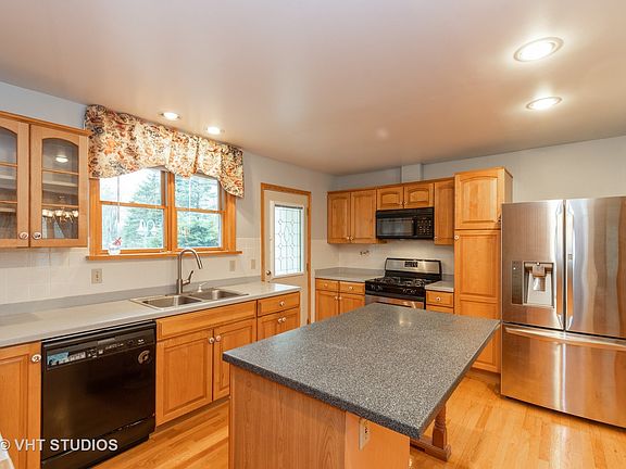 Be prepared to be amazed! Gorgeous stone house! Two-sided fireplace in the living room and the family room. Hardwood flooring in large living room welcomes you as you enter the home. Radiant, heated marble floor in family room. Separate dining room and big kitchen with island. First-floor, full bathroom is located in hallway to the garage. One bedroom on first floor with another bedroom converted to a laundry room. Cozy loft is a great place for a play area. Huge master bedroom has its own balcony overlooking fantastic backyard and golf course. Master bath is equipped with whirlpool bathtub. Two additional large bedrooms and a hall bathroom on second floor. Partially finished basement is waiting for you to customize to your liking. Great neighbors with great schools. Randhurst shopping center is just 5 minutes away, driving. Interstate highway is less than 10 minutes away.