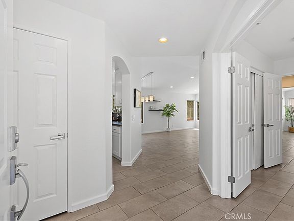 HIGHLY UPGRADED SINGLE-LEVEL DETACHED HOME WITH SCENIC VIEWS IN THE PRESTIGIOUS GATED COMMUNITY OF SAN SIMEON. Located at the end of a quiet cul-de-sac, this detached home boasts an open floor plan filled with natural light and offers scenic views of trees, city lights, and mountains. The remodeled kitchen features soft-close cabinets with a spice drawer and lazy Susans, quartz countertops, a glass mosaic tile backsplash, and stainless steel appliances. The spacious great room showcases a high ceiling, a cozy fireplace, and a sliding glass door leading to the private patio. The primary bedroom features high ceilings, scenic views, a spacious mirrored closet, and a ceiling fan. Upgraded bathrooms add a touch of luxury, while the hallway offers additional storage with a cabinet and quartz countertop. Recessed lighting and tile flooring extend throughout the home, complemented by fresh paint. The garage includes epoxy flooring and overhead storage racks. Step outside to a private backyard with a covered patio and a sleek glass fence. Enjoy very low HOA dues, no Mello-Roos, and low taxes. Ideally located near award-winning schools, parks, an aquatic center, a Jack Nicklaus-designed golf course, shopping, dining, movie theaters, hiking and biking trails, and major freeways.