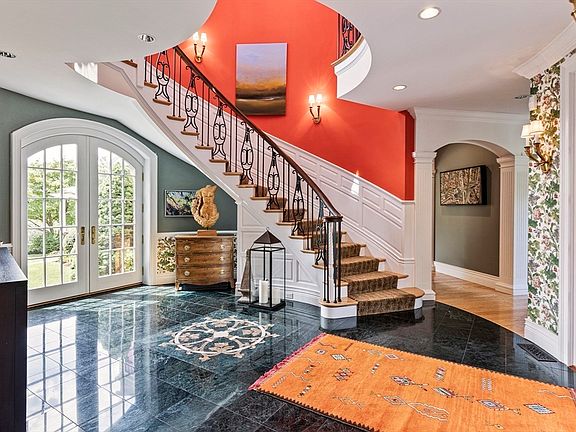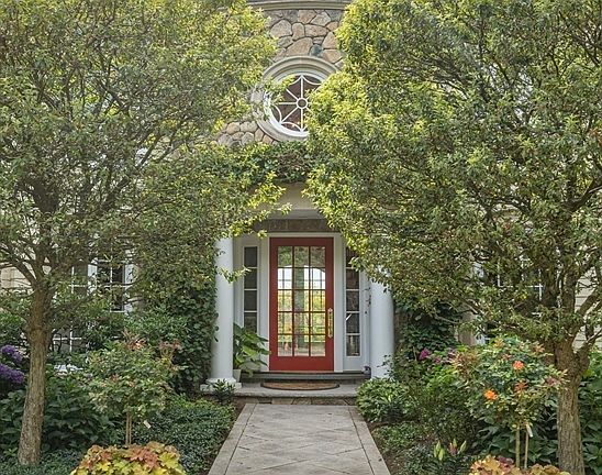 This stunning, professionally designed home is all about the details. Custom millwork, coffered and tray ceilings, arched windows and stained glass accents create an elegant yet welcoming atmosphere. The kitchen features beveled glass cabinetry with interior lighting, a spacious cooktop counter and thoughtful touches throughout. Window seats with built-in storage, a family room with cove lighting, marble fireplace and spectacular views of the contiguous Upton State Forest. Every bedroom has an en suite bath and built-ins, including the luxurious primary suite with gym, sauna, steam shower and dual dressing areas. Designer lighting, custom shutters, imported hardware and unique finishes like hand painted sinks, and antique tiles elevate each space. Even the basement has a chef's area - perfect for entertaining. Surrounded by garden views and beautifully lit inside and out, this meticulously maintained home is ready to be loved by it's next owner- This home is Special!!