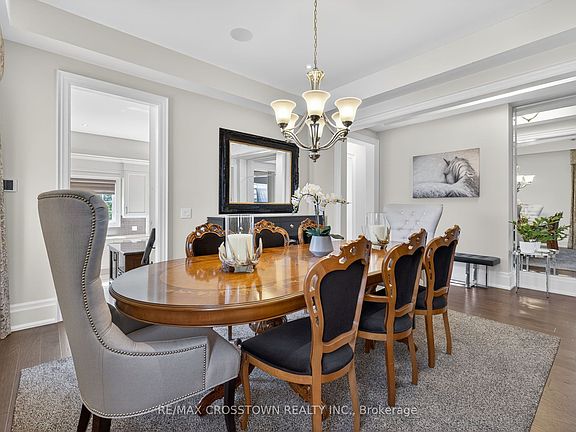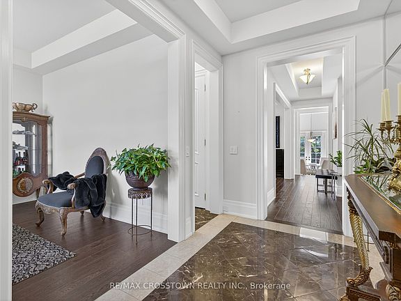 Welcome to 10 Annsleywood Court, a meticulously maintained Rosehaven Platinum Collection residence in prestigious Kleinburg Heritage Estates. Set at the end of a quiet court, this home showcases over 7,000 sq. ft. of refined living space on a rare 13,627 sq. ft. pie-shaped lot, nearly double the size of regular 7100+ sq ft lots in the cul-de-sac. Delivering unmatched scale, distinction, and long-term value, it stands as the crown jewel of Heritage Estates.The original owners were passionate about their selections, elevating every detail beyond Rosehavens already high-end standards. Upgrades include oversized baseboards, widened trim, an upgraded foyer floor, and premium textured hardwood that adds timeless character and durability. Soaring 10 ft & 14 ft ceilings, integrated surround sound, and elegant detailing flow throughout. At the heart of the home, the chefs kitchen featuring Wolf and Sub-Zero appliances blends elegance with function. Custom cabinetry integrates the built-in refrigerator, oven, and steam-oven, while the centre island includes a built-in microwave and wine cooler. The second floor offers four spacious bedrooms, each with its own ensuite bath. The serene primary suite features a massive walk-in closet and a spa-inspired ensuite with heated floors.The finished walkout basement includes a media room, a full bathroom, an exercise room, a custom wine cellar, and a 600 sq. ft. recreation/family room with direct walkout access to the patio and backyard. The versatile space easily offers 5th bedroom potential. Outdoors, over $80,000 in professional landscaping includes an interlock stone patio, premium stonework along the walkway, and natural rock accents - a durable, well-designed space for dining, lounging, & family enjoyment. Combining Rosehaven Platinum craftsmanship and the largest lot in Heritage Estates, 10 Annsleywood Court offers discerning buyers a rare chance to call Kleinburgs most distinguished address their own.