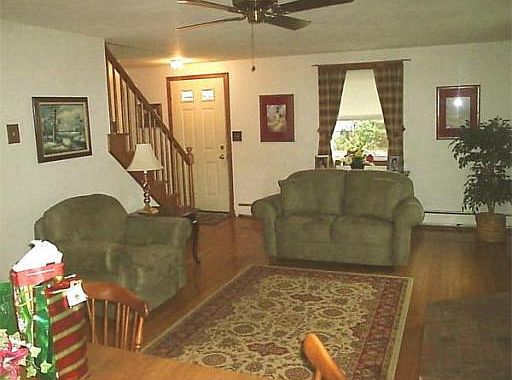 A well maintained ONE OWNER,( 50 YEARS). Garrison Colonial. One of 3 homes on this DEAD END street. Two full baths and one half bath. Features: vinyl siding, recent new roof, Newer vinyl storm windows, large private yard, large deck, First floor has kitchen, FIREPLACE living room, dinning room (or den), half bath, hardwood floors. Second floor has a large foyer, 4 bedrooms, a full bath and hardwood floors, and pull-down attic stairs Basement features, laundry and forced hot water furnace area, and also a full kitchen, full bath and sleeping or sitting area which has been used as a teen or guest suite.