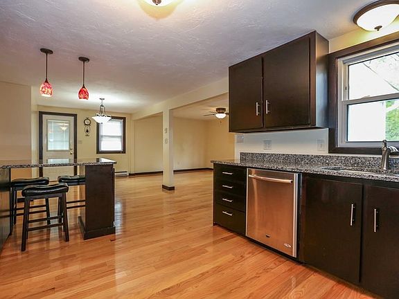 Welcome to 10 Baldwin Ave, Marlborough, MA! Delightfully pleasant custom open concept 3 bedroom 2 full bath Ranch on quiet side street near Memorial Beach, Jarowek/Middle/High School with superior access to highways/shopping/restaurants! Nicely designed 27x11 updated contemporary style kitchen with granite counters, SS appliances, spacious eat-in area, & plenty of cabinets. Large living room with bay window & wood stove perfect for relaxing by the fire. Updated bath with full tub/shower, tile flooring, & granite counter. 14x11 master bedroom with full bath. Loads of hardwood flooring throughout. Fabulous family room with tiled flooring in lower level plus a 4th bedroom/office/playroom. Entertaining size patio for barbecues & family get togethers. 1 car garage plus storage. Plenty of off street parking. Access to private neighborhood beach at end of Meadow Road. Come see this outstanding value!