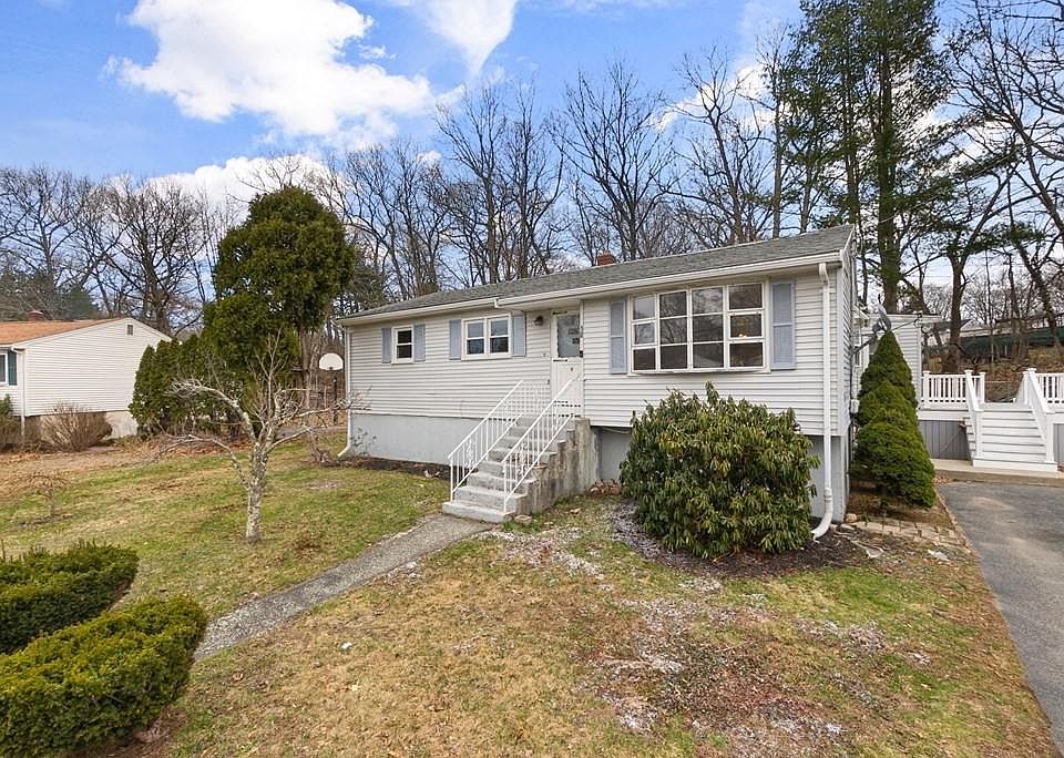 This wonderful Randolph ranch style single family is located on a lovely tree lined half an acre lot on a quiet side street. Move-in ready! The sunny main level provides an airy open layout w/ hardwood flooring throughout the living room/sunroom/3 good size bedrooms/full bath & a beautiful modern kitchen w/ gas cooking, granite countertops & newer stainless steel appliances. There is a side entrance through the sunroom that leads to the 2015 built composite deck, perfect for entertainment plus an incredible outdoor space with 4-6 parking on a paved driveway. Lower level w/ its own entrance is fully finished w/ tile flooring, an additional spacious bedroom w/ large walk-in closet, extra living areas & a renovated full bathroom. Roof (2014), BRs newer windows (2018), new furnace & central air added (2019). Few minutes from the highway, near the Holbrook/ Randolph commuter rail & plenty of shopping/restaurants.