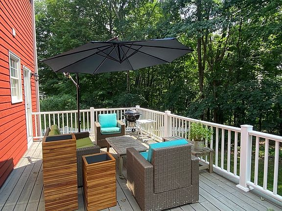If you've been searching for the perfect home in a sought-after cul-de-sac neighborhood, look no further, and welcome to 10 Barberry Lane! This center entrance colonial has been lovingly maintained with many updates, including a new roof & full HVAC. High ceilings & large windows provide abundant natural light throughout every space, and the traditional open layout makes it a perfect home for everyone. The living room flows seamlessly into the dining room, great for parties & get-togethers, and the large kitchen with dining area is sure to please with its generous cabinets, pantry, & easy access to the large deck, perfect for indoor/outdoor entertaining. An impressive family room with fireplace, 1/2 bath, and laundry room finish off the first floor. Upstairs are four bedrooms, including a main bedroom with an ensuite bath & walk-in closet. The two-car garage, finished basement with storage & brick-covered patio complete this great home. The walk-up attic is just waiting to be finished!