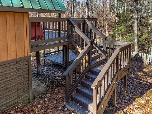 No matter if you are looking for a full time home with privacy, a vacation getaway or an investment, This is it!!! Fully furnished cabin with a fireplace for the colder months and HVAC for year long comfort. Living room and eat in kitchen with ample room for kitchen table dinners or game night. Bedrooms are upstairs and each have their own balconies. Speaking of outdoor space, wait until you see the two separate rear decks. One is directly off the kitchen with a grill, porch swing and....a view of the woods!! Lower deck is large and just as nice. A small stream and the sounds of the woods are your music. Front yard is low maintenance with wildflowers and ferns and a fenced backyard for the dogs. Total of 1.92 Acres across four lots offer privacy and opportunities. Easily clear a spot to park your boat because there are 3 boat ramps within 8 miles from the cabin: Longbow Marina 4.7, Claylick 6.8, Bangor 8 miles. Located only 30 Miles to the Red Red River Gorge for a day of hiking. Less than 4 miles to the new Dollar General Store. Cabin has High Speed Internet and a recent upgrade to Pex plumbing as well as an existing vapor barrier and foam insulation. Call Today!!!
