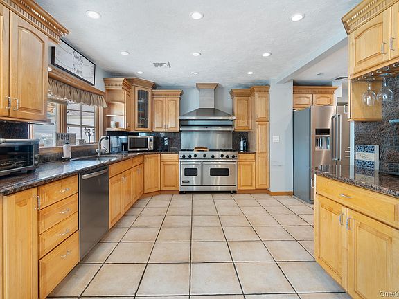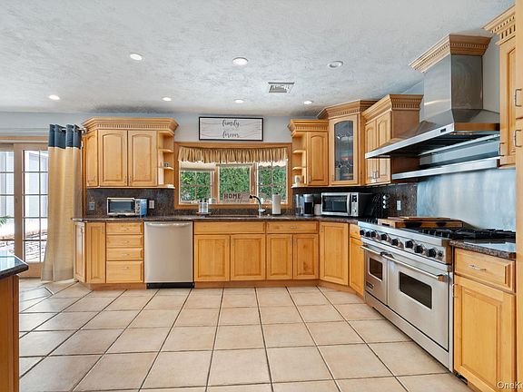 Stunning Melville Home: "Built for Comfort" Welcome to this exceptional 4-bedroom, 2.5-bathroom residence located in the highly sought-after Half Hollow Hills School District, where comfort meets luxury in every detail. Step inside and you will find the Inviting High-Ceiling Dining Room with floor to ceiling natural stone wood burning fireplace. Experience the elegance that is enhanced with multiple skylights, a beautiful bay window and sliders to a Sunroom that fills the home with natural light. Entertain while cooking in style with granite counter tops, a Viking oven, Kitchen Aid refrigerator and dishwasher, beautiful cabinetry with lights, a deep sink, and radiant heated floors for those chilly mornings or just spread out and Relax in your extra-large den/family room. Escape to your Luxurious Primary Suite Retreat featuring professional grade high ceiling lighting with a gorgeous fireplace and direct access to a spa-like master bathroom equipped with skylight, relaxing jacuzzi tub and luxurious modern shower. The updated hot water heating system ensures a soothing experience year-round. Make memories in your Outdoor Oasis with this beautifully landscaped property designed for relaxation and entertainment, featuring outdoor LED in-ground lighting (controlled by automatic timer), an electronically controlled retractable Awning and impressive 20,000-gallon in-ground pool (18' x 36') with waterfall, multiple jets, multi-colored lights, spa heater and diving board. The yard boasts fresh natural sod/grass and a brand new shed. The U-shaped driveway accommodates 3-5 vehicles comfortably making it perfect for hosting family and friends. The house is equipped with indoor and outdoor LED ceiling lighting and Slomin's professionally installed video equipment with a built-in central vacuum system for convenience. The property features a commercial-grade central air conditioning system that provides powerful cooling throughout the home. Additional highlights include new washer/dryer, high electrical outlets in every room for easy access to electronics as well as other options including low dim lighting that provide a unique ambiance. This remarkable home offers the ultimate blend of comfort, luxury and modern technology perfectly located in a beautiful residential neighborhood, just steps away from top-rated schools and amenities. Don't miss the chance to make this dream home your own!