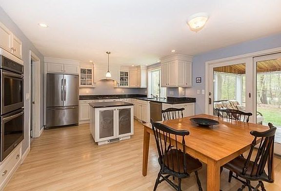 This lovely brick front Royal Barry Wills four bedroom colonial is located in one of Boxford's most desirable East Village neighborhoods. Easement access to Pye Brook provides hours of enjoyment on Four Mile Pond, where you can kayak, fish, or nature watch. Beautifully set on a quiet street with easy access to the elementary and middle schools. Enter from the two car garage into a functional mudroom with half bath and large pantry. The updated eat-in kitchen features granite countertops and cream-colored cabinets, and sliding doors to the attached oversized screen porch. A large entrance foyer, and beamed, family room with fireplace feature brick floors. The front to back living room and spacious dining room make this the perfect home for entertaining. The four generously sized bedrooms and 2nd floor bathrooms have been recently renovated. It truly is your "home at last".