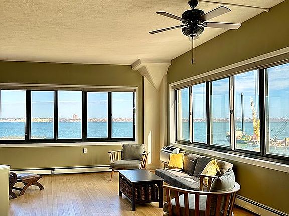 Offer accepted... This waterfront 1Br boasts all of the views you can imagine at a tiny fraction of the price tag! Majestic 270 degree views from wall-to-wall windows overlook the Manhattan and Brooklyn Skyline, Statue of Liberty, Verrazano Bridge, and Coney Island. Envision yourself enjoying a romantic candlelight dinner or hosting that 4th of July BBQ and watching an amazing fireworks show over the open Atlantic Ocean! Steps from the ferries to downtown and midtown Manhattan (either in a 1/2 hour ride), this beautiful, gated waterfront community offers 13 acres of lawns, tennis/pickle ball courts, gym, BBQ areas, and a generous dog run. Parking, package collection, and 24-hr patrolling security makes Bay Street Landing a convenient and community-oriented place to call home. With close proximity to grocery shopping, train and your own parking space, apartment 5E checks all the boxes for location, location, location! Cross ventilation keeps the apartment cool; you wouldn’t need the A/C’s often. This SE corner loft has been converted to a 1 Br layout. With great storage space, unit 5E is a rare and enviable corner gem!
