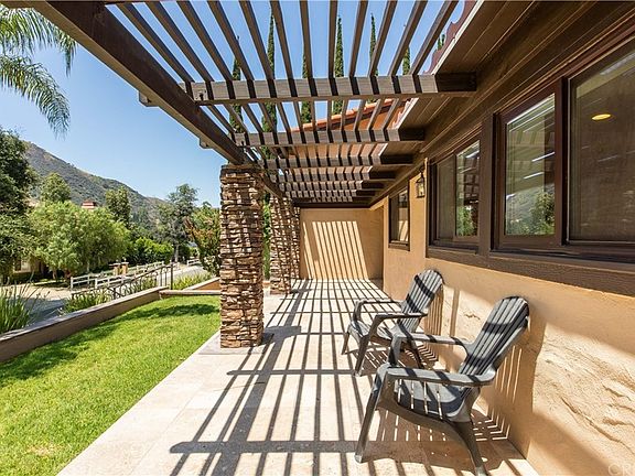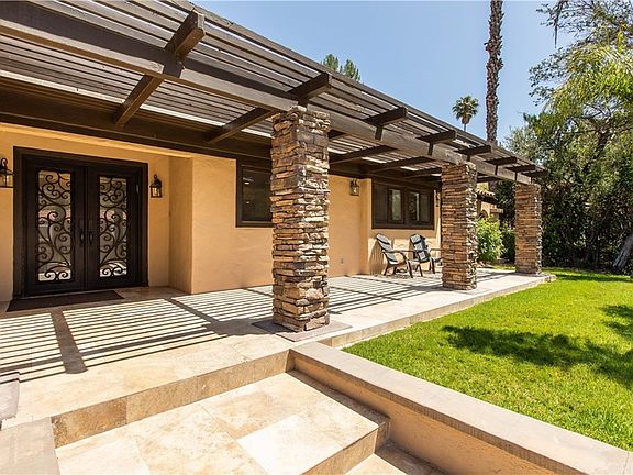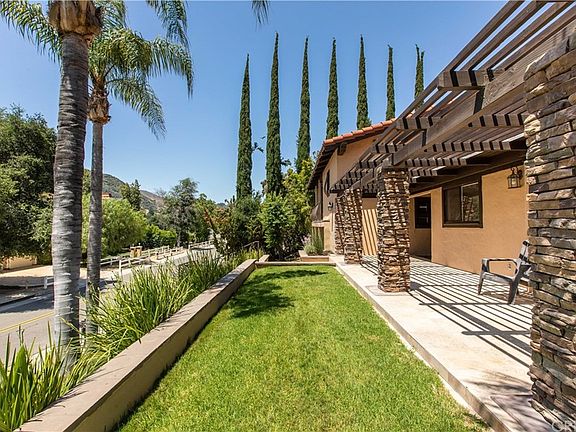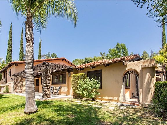 Beautiful home located in the prestigious community of gate guarded Bell Canyon. This home sits on a flat cul-de-sac street. Light and bright open floor plan, indoor outdoor living at its finest. Walk through the dramatic entrance with Travertine floors running throughout most of the home. Enter the large living room with fireplace, the oversized dining room also with fireplace and family room, all perfect for any occasions. The spacious large updated chefs kitchen has stainless steel appliances and large center island. Master retreat with sitting area, walk-in closet, Huge balcony with mountain views and a luxurious Master bathroom. One bedroom on main floor with separate entrance. 3 car attached garage. Entertainers yard, lots of room for a pool, complete with solid covered patio, grassy area, sports court and separate custom pavilion with indoor BBQ/fireplace perfect for those indoor/outdoor parties. Community tennis courts, equestrian center, fitness center, hiking and riding trails and so much more. In the award winning Las Virgenes School District. ONE OF THE BEST VALUES IN AN ESTATE AREA!