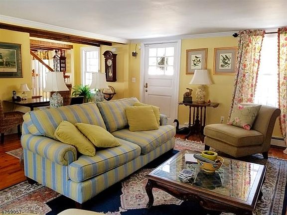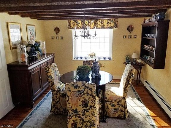 Circa 1850.Turn of the Century Saltbox Home situated in a great, convenient loc to local amenities!Home features a mix of modern and vintage, two bedrooms, two full baths, firepl. First flr incld fully equipped kitchen, living room with fireplace and a full bath. The floor to ceiling brick, cozy warm fireplace and crown moldings enhance the living room. Dining room offers unique beamed ceiling. Hardwood flooring throughout home. Exterior door in the eat-in kitchen leads to the rear yard. Second floor has two bedrooms and a very spacious full bathroom. One bedroom is equipped with built-ins for storage or home office. Two car detached garage is a plus. A lovely slate walkway leads you to this unique home. White picket fencing borders the property and adds tons of charm and curb appeal. Contact me Rosa D'Onofrio the listing agent at 973-234-7217 with any questions or to make an appointment.