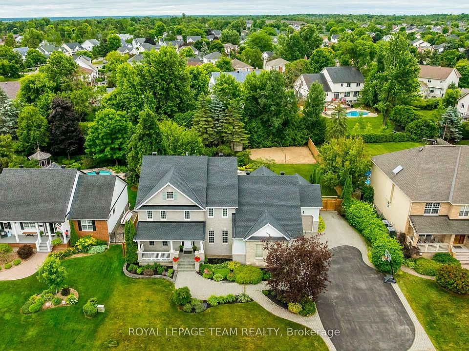 OPEN HOUSE SUN NOV 23rd 2-4PM. Nestled on one of Stittsville's most coveted streets, this distinguished estate home showcases timeless elegance and unmatched curb appeal. Featuring meticulously landscaped gardens, striking stone, and a rare triple-car garage, this 5-bedroom, 3-bathroom residence elevates family living. Set on a premium lot, this home boasts what is undeniably one of the most spectacular backyards in the entire neighbourhood. Thoughtfully designed for year-round enjoyment and luxurious outdoor living, this private oasis features an oversized inground saltwater pool surrounded by lush gardens and mature trees, creating a resort-like atmosphere. An expansive deck and inviting 3-season sunroom offer the perfect space for relaxing or entertaining. For added fun, enjoy your very own beach volleyball court in the summer, transformed into a magical ice rink in the winter; making this backyard truly one-of-a-kind! Inside, the home is equally impressive. The beautifully updated chefs kitchen is a dream, complete with a large island, granite countertops, stainless steel appliances, and abundant cabinetry. A butlers pantry connects to the elegant formal dining room, perfect for hosting. The main floor also features a dedicated home office, ideal for remote work. Upstairs, the luxurious primary suite offers a peaceful retreat with a cozy fireplace, a walk-in closet, and a newly renovated spa-inspired 5-piece ensuite. The second level also includes a convenient laundry room, fully renovated 4-piece bathroom and 3 additional bedrooms. The finished basement adds even more versatility, featuring a spacious bedroom, a massive recreation area, and a stylish bar, perfect for movie nights, game days, and family gatherings. Walk to Main Streets cafes, shops, restaurants, schools, library & more. A rare retreat offering elegance, space, and lifestyle in the heart of the community!